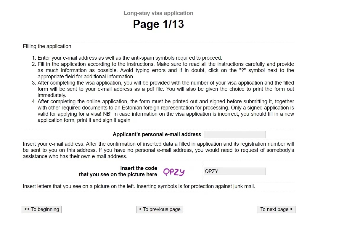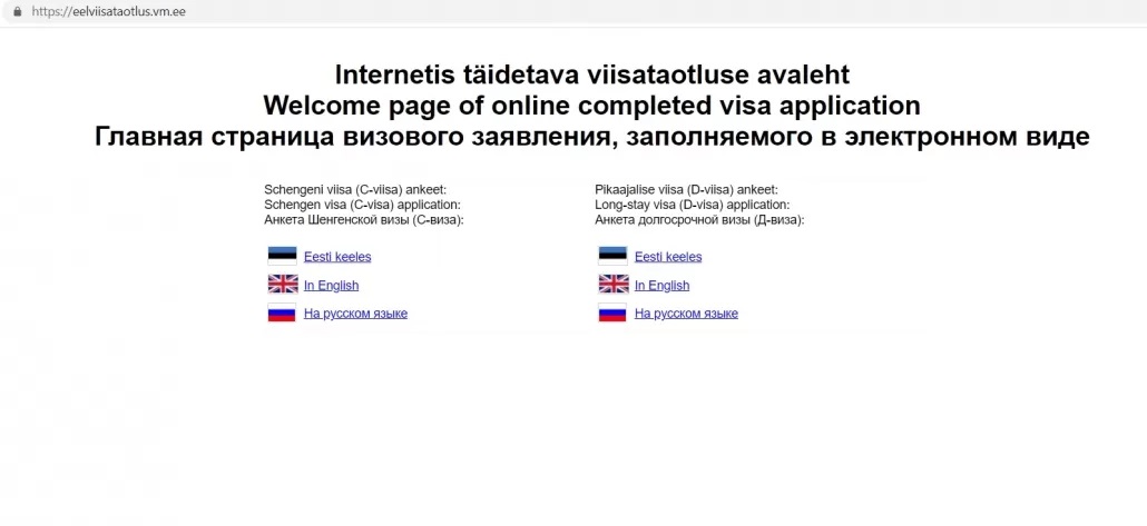 Visit the website of the Estonian Ministry of Foreign Affairs. You can choose to proceed either in Estonian, English, or Russian. Also, choose the visa type you want to apply for.