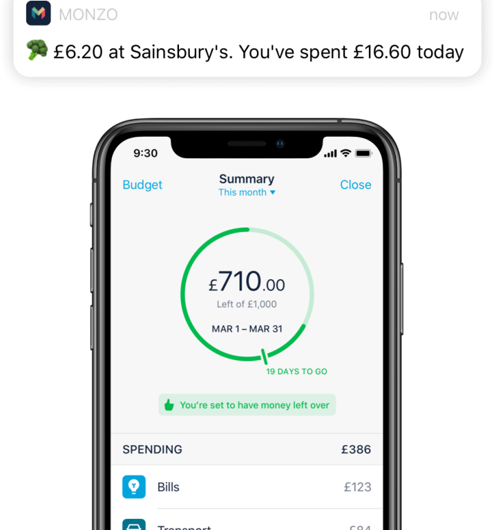 • Monzo online banking application is convenient to manage, spend and save your money.