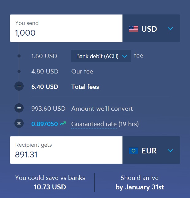 Remitly charges a flat fee depending on the amount. The standard price is $3.99 if you’re transferring less than $1,000, and if it’s above $1,000, no fee is applicable. The same fee structure applies to both ways of sending money: Express and Economy. However, there’s an additional fee of 3% for credit card transactions.