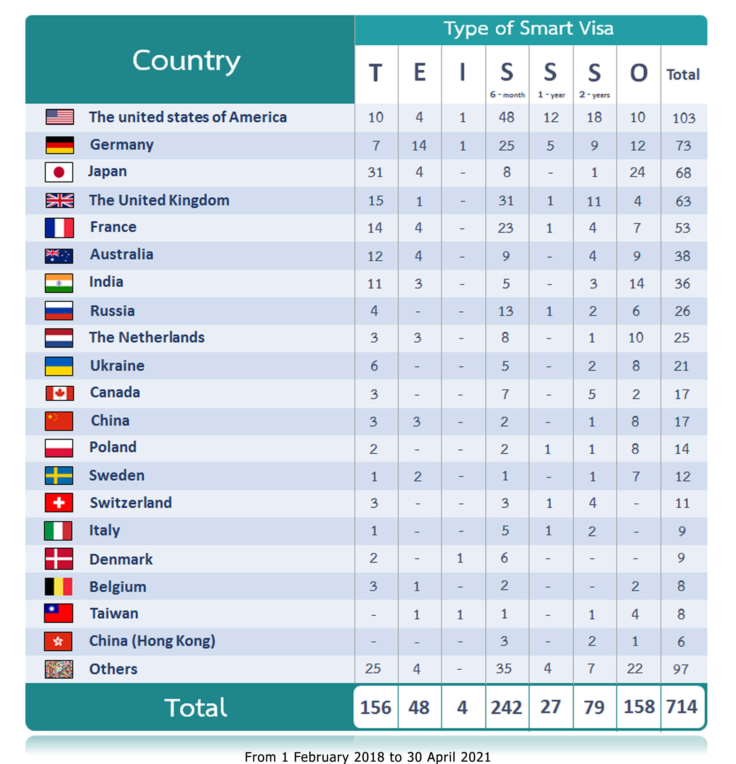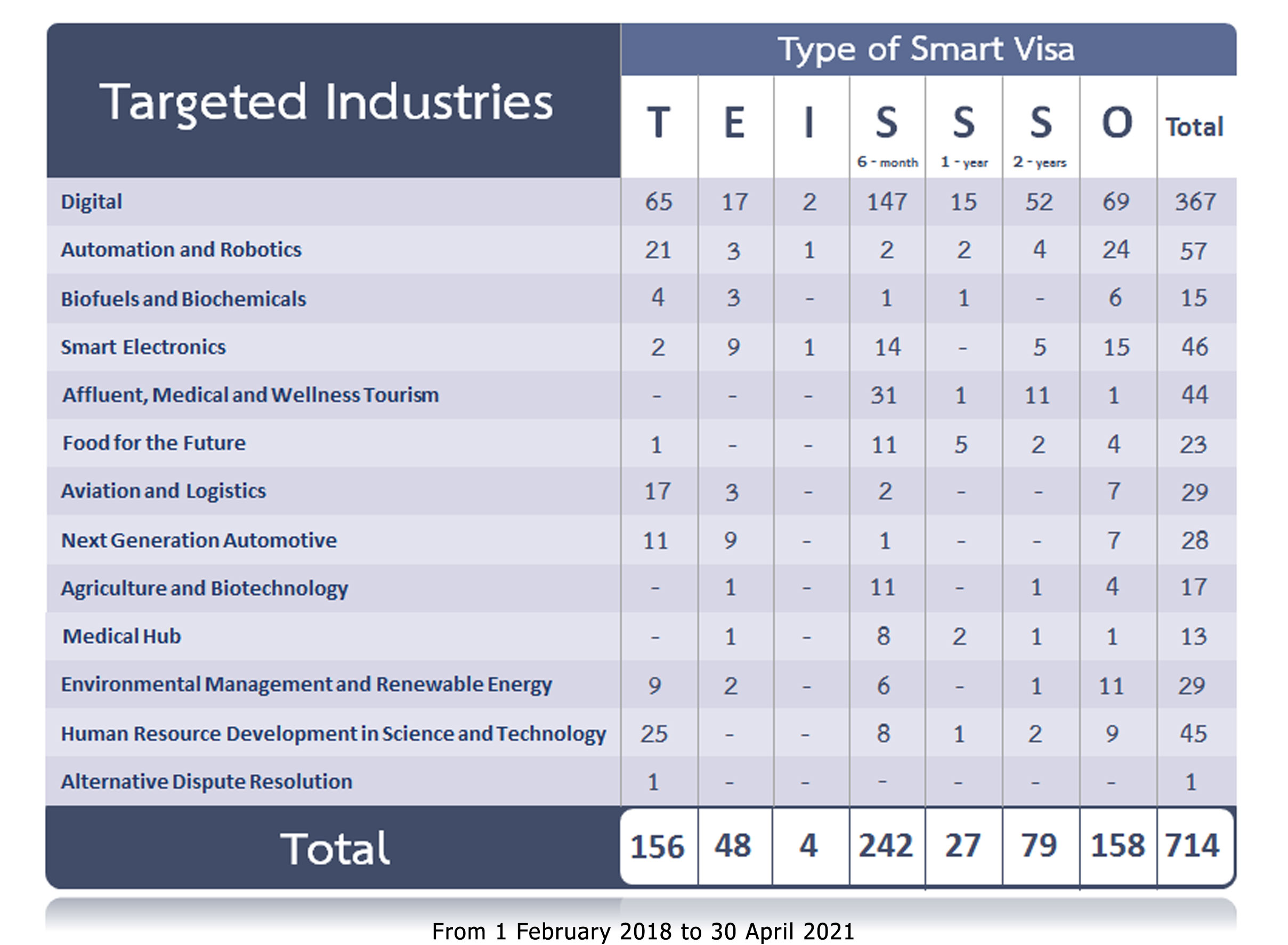 According to the One Stop Service Center for Visa and Work Permit (OSS) in Thailand, 924 smart visas were issued between February 2018 and September 2021.