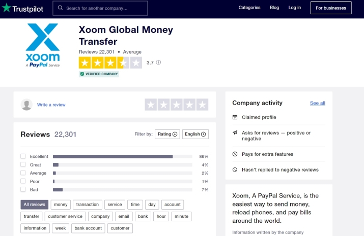 Xoom’s Trustpilot score is 3.7 which translates as average. Still, there is a huge group of people who love the service it provides.